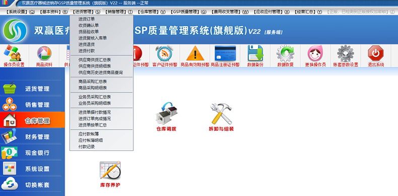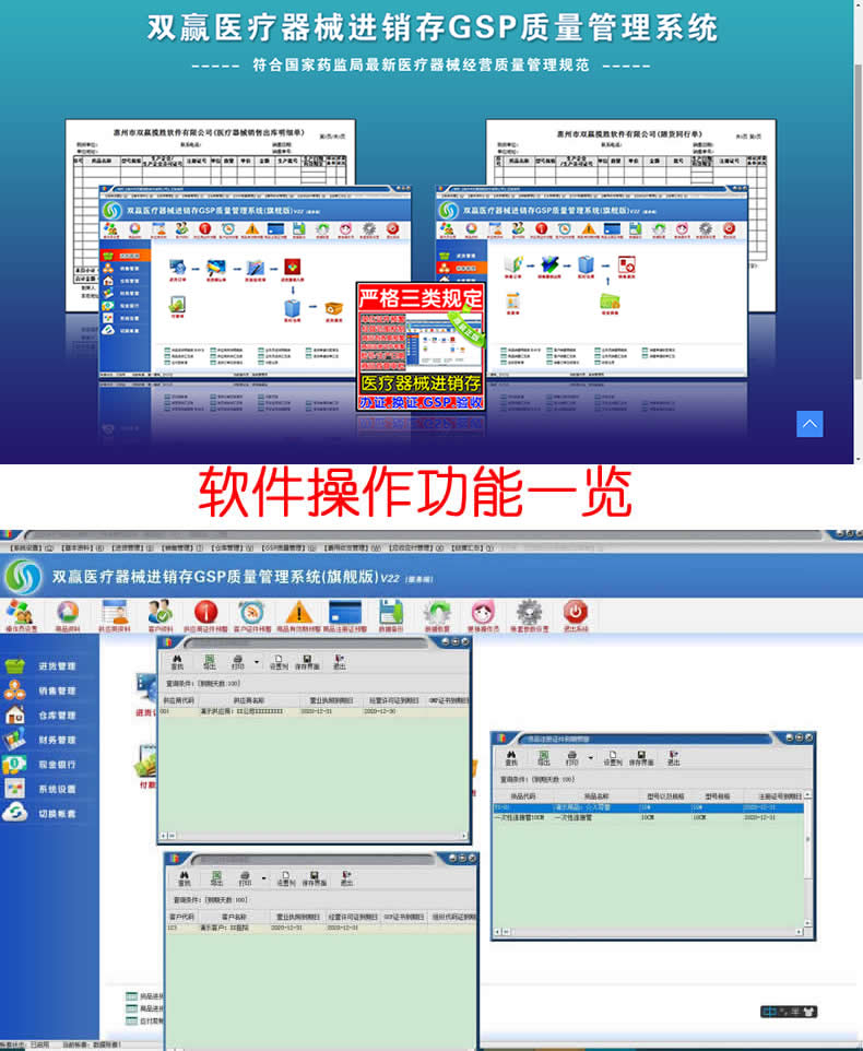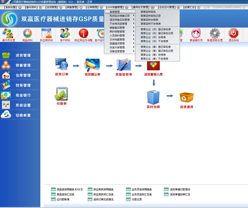 双赢医疗器械进销存GSP质量管理系统(二三类GSP验收认证软件,医疗器械进销存软件,双赢软件)