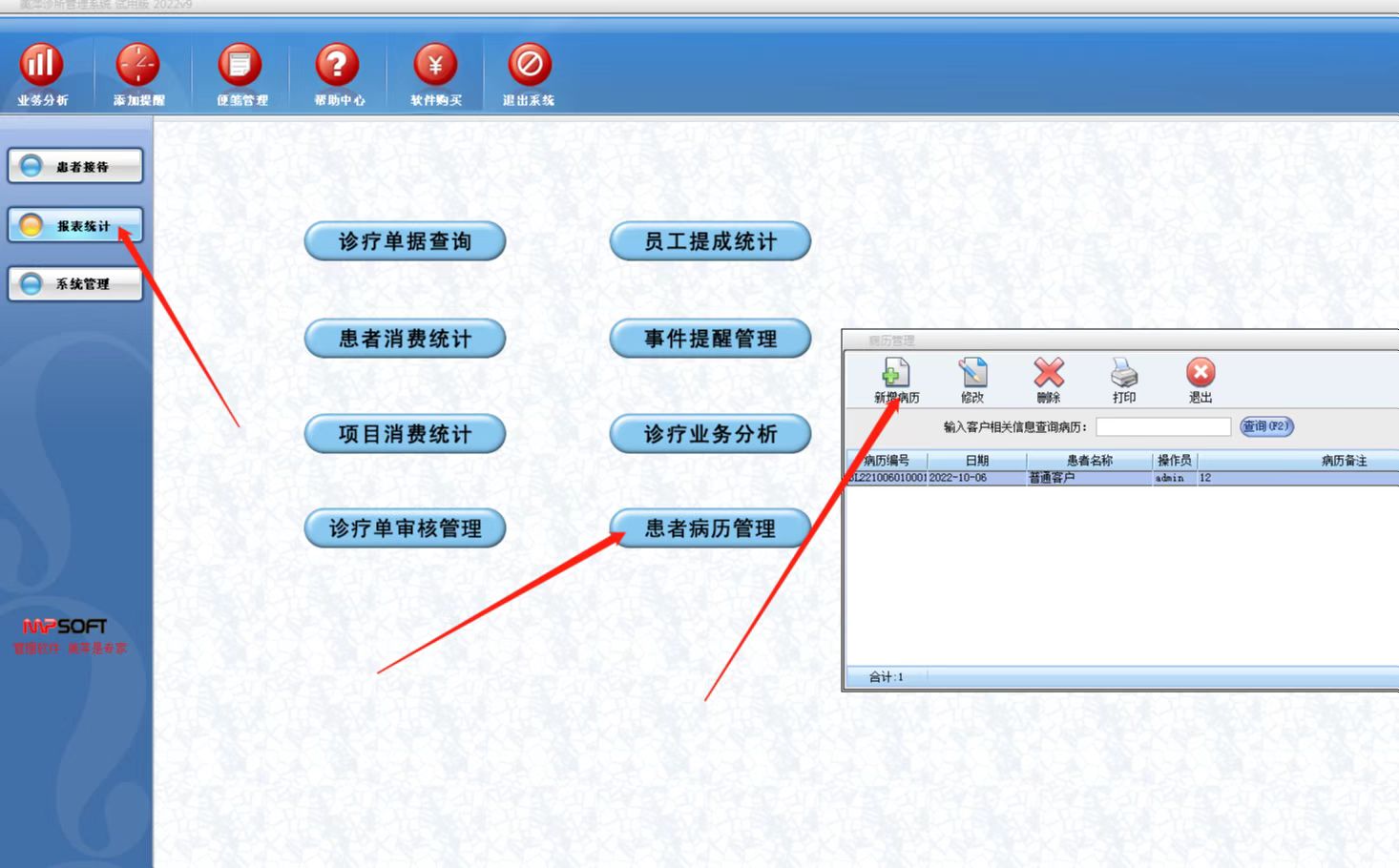 美萍诊所软件的病例模板在哪里增加呀?如图示: